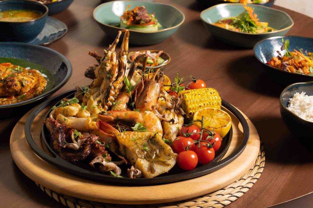 - A seafood buffet showcasing the freshest local catch expertly charcoal grilled with authentic Omani spices. Highlights include Omani Lobster, Shari Fish, Sultan Ibrahim, Fresh Hamour, Octopus, Crab, Shrimp, Jumbo Shrimp, Squid, and Yellow Tuna.