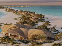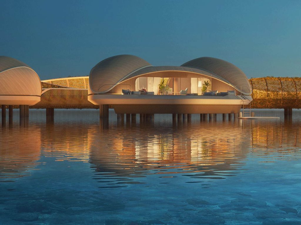 Its circular villas and curved decks evoke seashells scattered across the lagoon, blending futuristic minimalism with an intimate connection to nature.